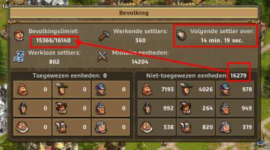Ja op zich klopt de settlers telling bij mij ook wel, maar toegewezen + niet-toegewezen (+ in training en op avontuur) is veel meer dan aantal militaire eenheden.