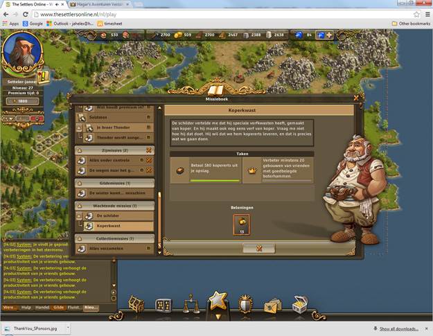 Ik heb 21 goed belegde boterhammen gebruikt om gebouwen van een vriend te verbeteren. maar de missie blijft staan. Het nieuws menu geeft wel aan dat het is uitgevoerd.
